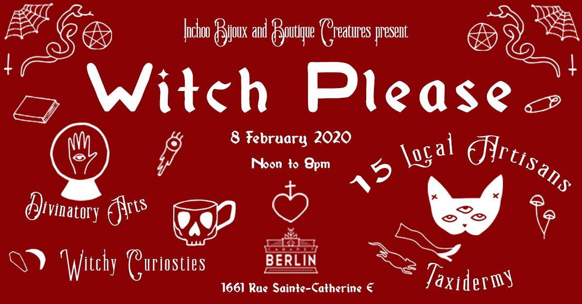 Discover the creations of local indie artists, from jewelry to clothing and artworks, enjoy a tarot or palm-reading session and have one of our special cocktails at the bar. Add us on Instagram @witchplease.mtl!!