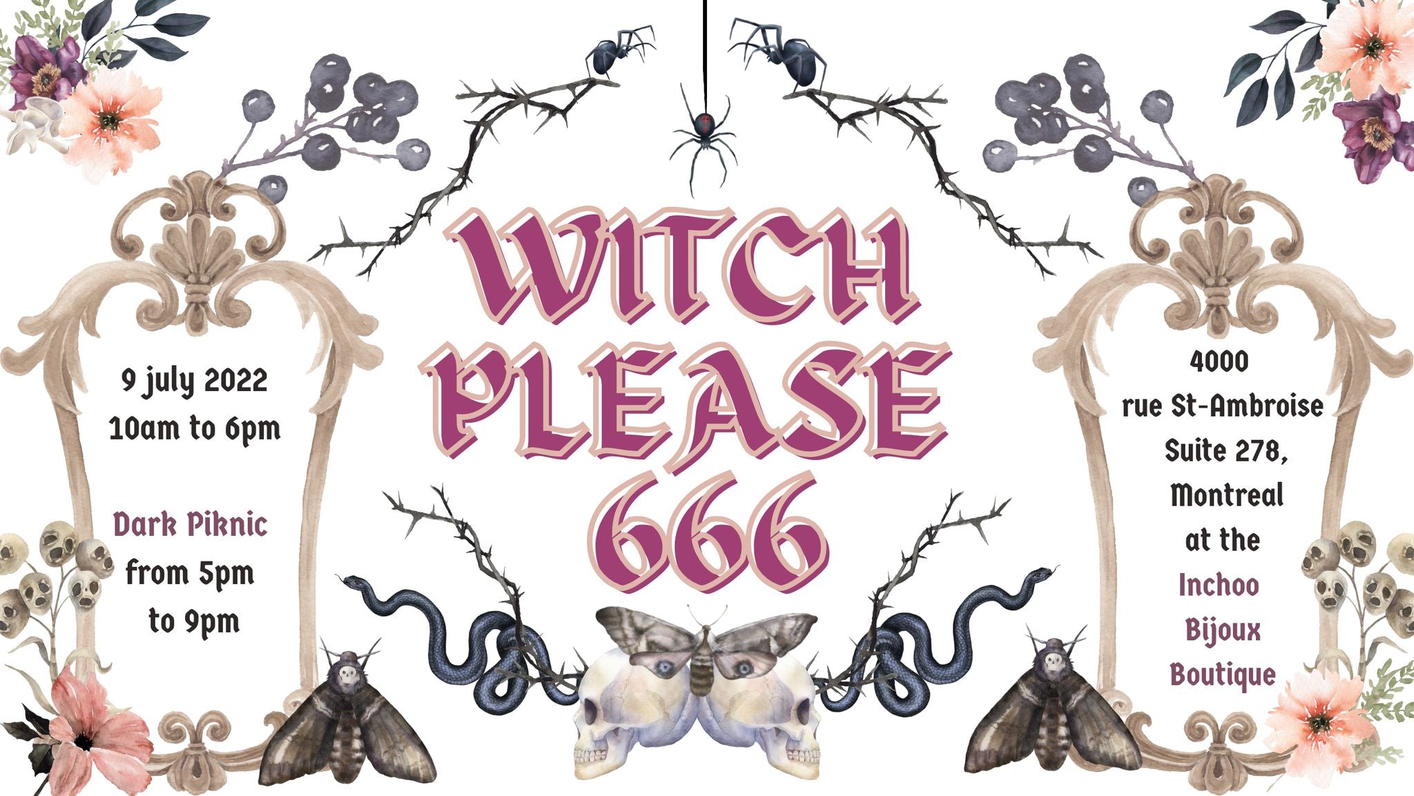 Witch Please is hosted at the Inchoo Bijoux Boutique : 4000 rue St-Ambroise, suite 278 in Montreal